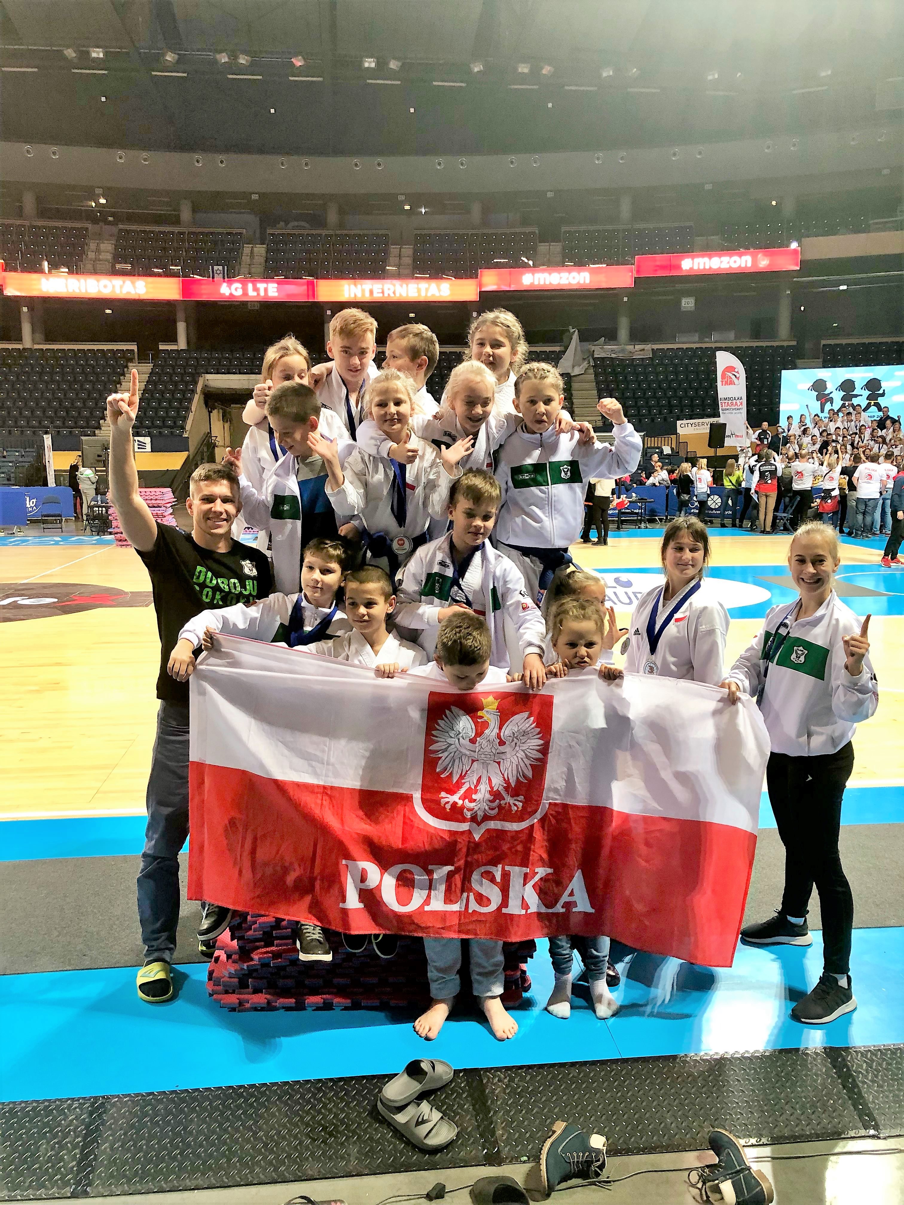 W miniony weekend „młode Sokoły” wzięły udział w THE 1ST WORLD BUDO KARATE CHILDREN’S CHAMPIONSHIP 2018. Nasz dziecięcy team przywiózł wór medali z Litwy. Warto nadmienić, że podobnie jak seniorzy, młoda kadra zdecydowanie lepiej odnalazła się w kumite, choć i w konkurencjach technicznych udawało się zajmować wysokie, punktowane miejsca. Reasumując zdobyliśmy: 3 złote, 5 srebrnych i 5 brązowych medali. W zawodach startowało w sumie ponad 500 zawodników z 10 krajów, a każda kategoria była w pełni obsadzona.